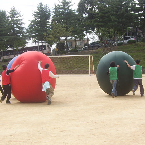 ⑥ 맨 앞쪽으로 온 애드벌룬을 출발선까지 가장 먼저 굴려온 팀이 승리한다.