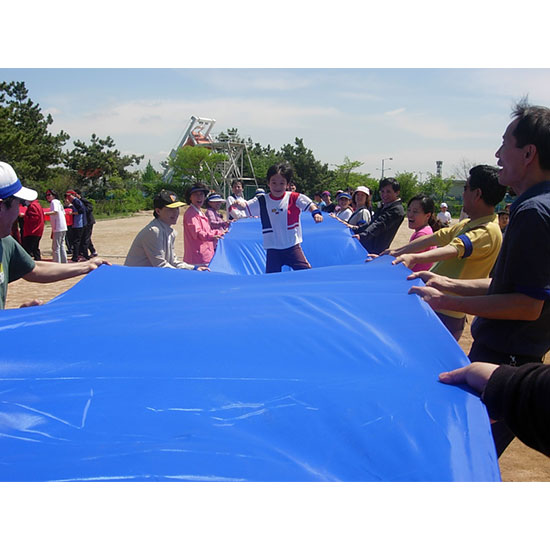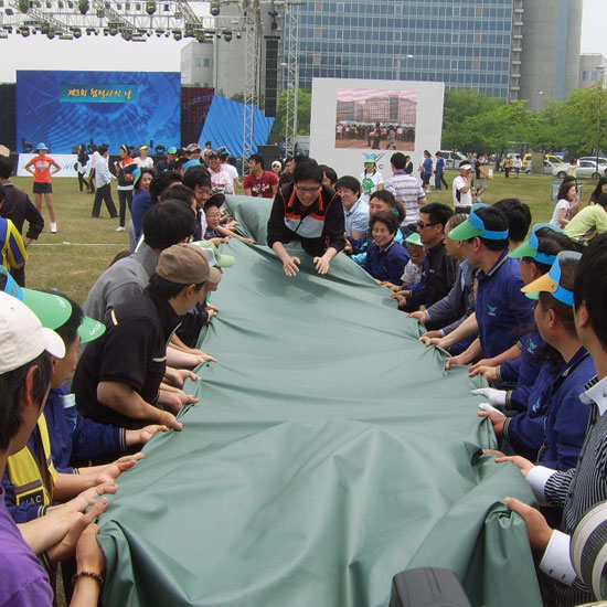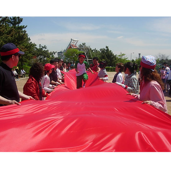 게임 종료 후 각 팀별로 구름다릴 릴레이 천을 정확하게 접어서 가져온 팀 별로 점수를
