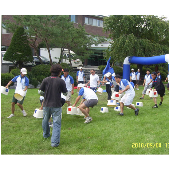 ① 의자 10개를 일정간격으로 일렬로 배치한 후, 진행자는 팀별 대표선수 5명과 도우미 10명을