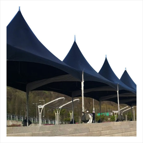 바닥고정을 모래나 팩으로 고정합니다. (바람이나 비에 날림방지)
