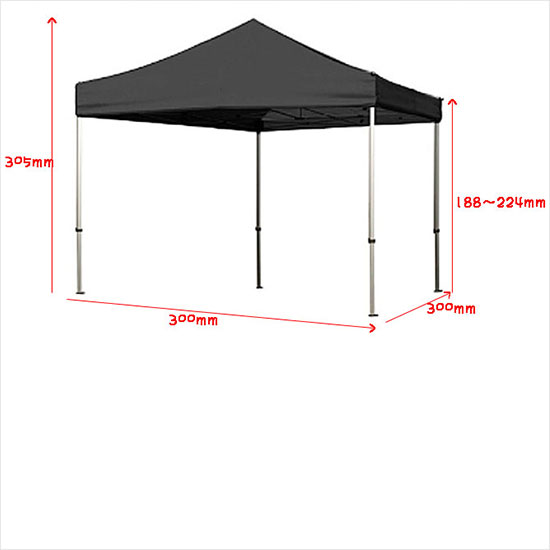 케노피천막 사이즈 안내:W3xD3xH 1.88~2.24m(h/다리높이)x3.05(h)지붕까지높이